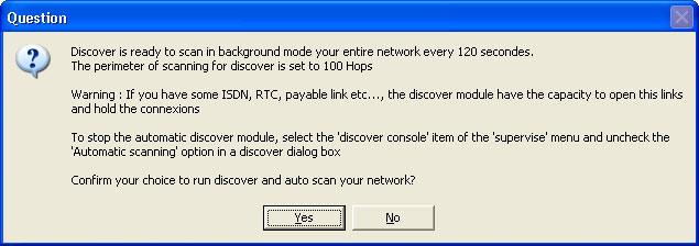 After you select the auto mode a new window appears and warns you of possible undesirable consequences of the discovery process.