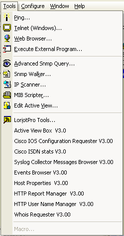 The Advance SNMP query performs SNMP query on the selected host. The query is totally user defined. A trace of the query could be display. A real SNMP debugger. |