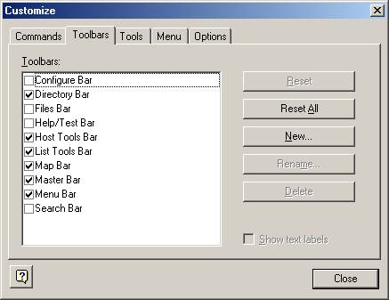 The Toolbar tab allows you to select what tool bars will be displayed on startup.