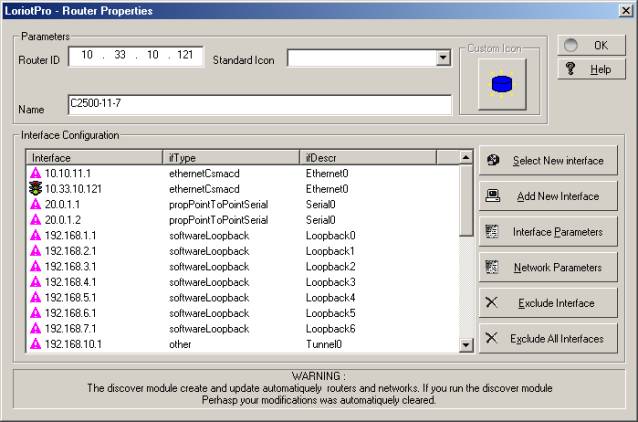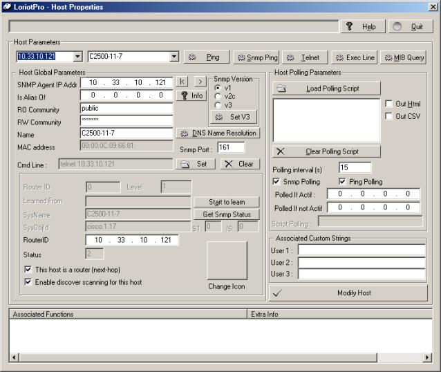 The Discover process will manage a router as individual hosts. A host setting called “ RouterID ” is used to group hosts together and virtually build a router object within LoriotPro. This object is used and managed by another process of LoriotPro.