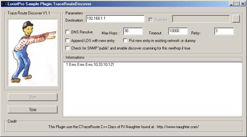 The TraceRouteDiscover plugin window