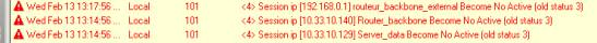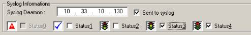 When there is a change of host status, it is possible to send aSyslog message to a Syslog server. It is also possible to send an Event. To use the Syslog capabilities, you must provide the IP address of the Syslog server and check the status levels that must be use to trigger the sending of a Syslog message. In the example above, a message will be sent to the Syslog server 10.33.10.121 if a host reaches the status 3 or status 4. When the host come back to status 2 no message will be sent. |