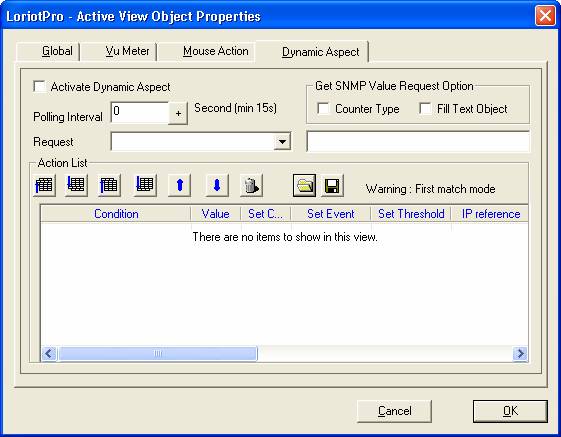 Warning: The default time out used by the Active View thread for the polling is 4 seconds. If the polled host does not answer to SNMP requests and if you have defined for example 10 SNMP requests on this host, the process will use 40 seconds before jumping to the next View object in the list. A complete polling cycle of all the objects in a view can take a while. The two thread strategy explains earlier in this document reduces the polling cycle time when Active View object are not responding. Keep in mind this behavior when defining object in a view.
