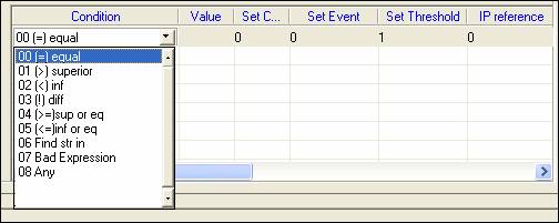 The same dialog box allows you to set multiple conditions and actions on a single directory object status or SNMP OID. These expressions are in a list box. They are read sequentially and the first matched action is executed if the condition is satisfied.
