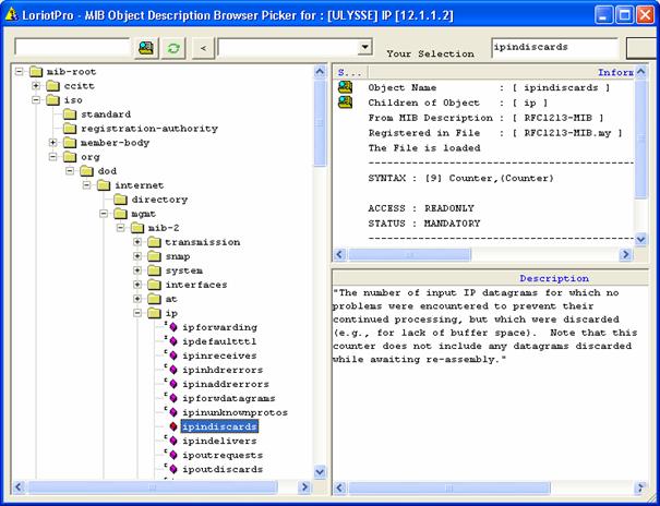 Warning: If you use an OID from a dynamically loaded MIB and not save in the MIB database you must use the numerical format. Else at the next LoriotPro startup the nominal OID will not be resolved and the Active View will not be able to use it. Refer to the MIB compiler documentation for understanding MIB object concepts.