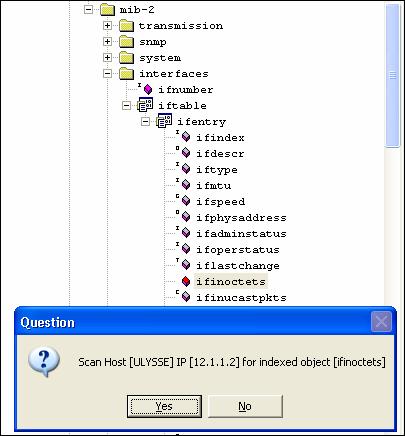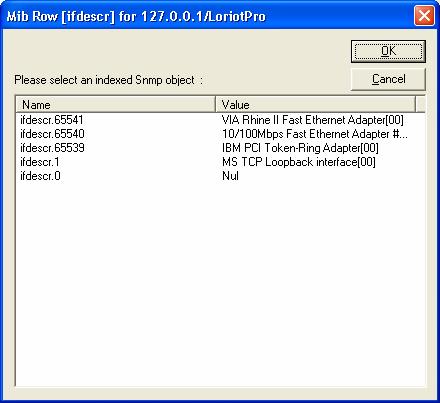 It is possible to use a list of indexed SNMP object and pick an index to select a whole line of a table. The file bin/config/sci/ifentry.sci used by the Active View Box Plug-in is a good example of such usage of object index. To add an index, you simply add it at the end of an SNMP object. There is not wizard for doing it, therefore you should answer No to the Wizard question box and enter the index value manually.