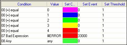 Adding action to an Action ListThe action list is a set of action ordered in a list. At each polling interval, each action is sequentially analyzed from the top to the bottom of the list until one condition is satisfied then the corresponding actions are executed (the object is colored and an event can be sent). The subsequent expressions are not analyzed. (First match mode)