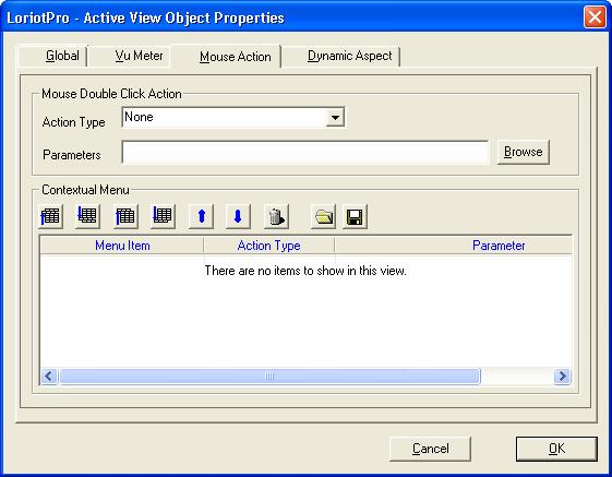 Defining the Object Contextual menuThe object contextual menu offers the same feature and action available with the mouse double click. When you are in process mode if you right click on an object a contextual menu is displayed. This menu has two options by default. The number of options could be extended at will.