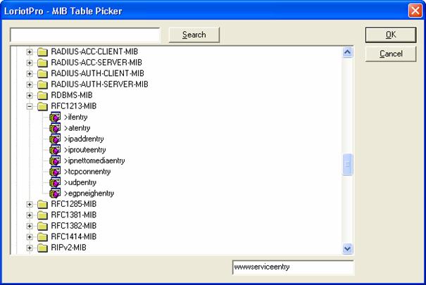 Open a MIB Table in a dedicated screen. When selecting this option the MIB Table picker is displayed. Choose a MIB Table here and click OK