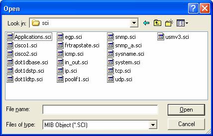 A list is defined in file with the SCI extension. When selecting MIB Object List the Open File is displayed, only .sci file are selectable.