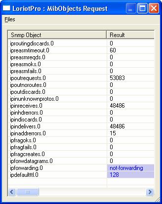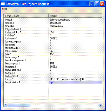The MIB Object List option performs a request on a list of SNMP OID. The results are displayed in a dedicated windows.