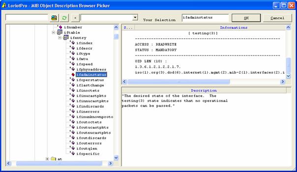 In the upper example we choose the ifadminstatus object that controls the administrative status of a network interface.
