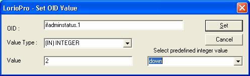 The Set SNMP OID is used to modify a SNMP object (OID) value. This is one of the powerful features of the Active View. With this option you can really define action on your device and manage you information system directly from the Active View.