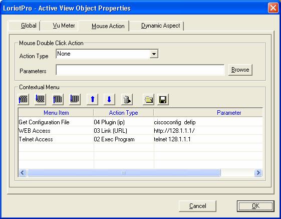 Like when defining Double click action, the usual Wizards will help you to select Directory Object, MIB object, Event, etc …