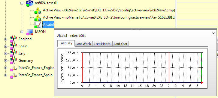 Each five minutes, the MRTG graph process sends the appropriate request for all object tasks. A supervision window is dedicated to the control of the process.