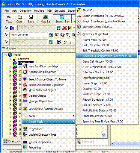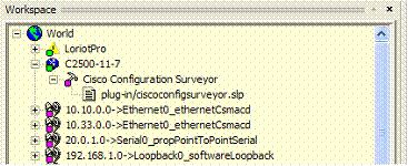Cisco Config Surveyor is a directory plug-in. You can attach it to a Cisco device define as a host in the LoriotPro Directory or to the LoriotPro object if you have multiple router to monitor.