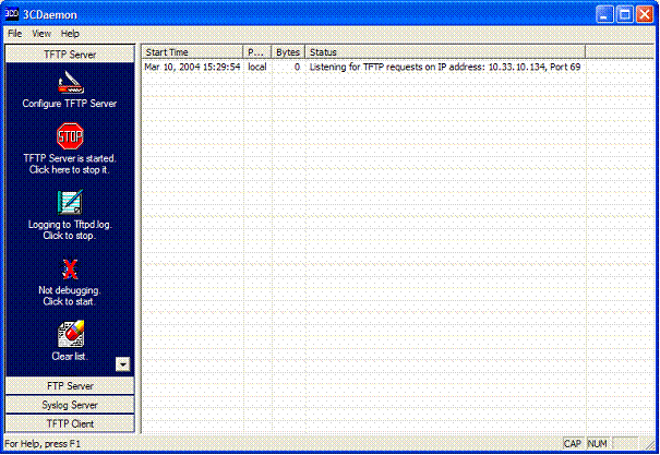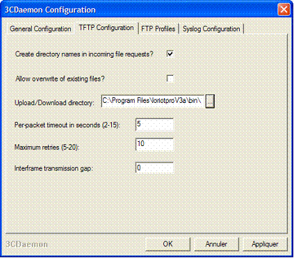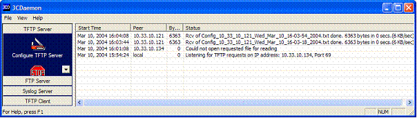 To use this Plug-in you should have somewhere in your network a TFTP Server. We document below the installation of the TFTP server from 3COM (3CDeamon)