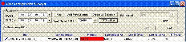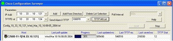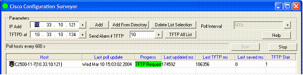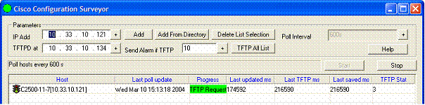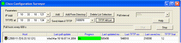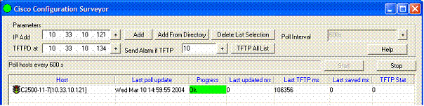 Enter the IP address of the TFTP server and click on the Add button. The host is added in the list. Set the polling interval, the minimum value is 600 seconds (10mn).