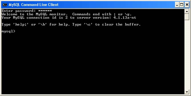 The program MYSQL command line client is available in the program list.