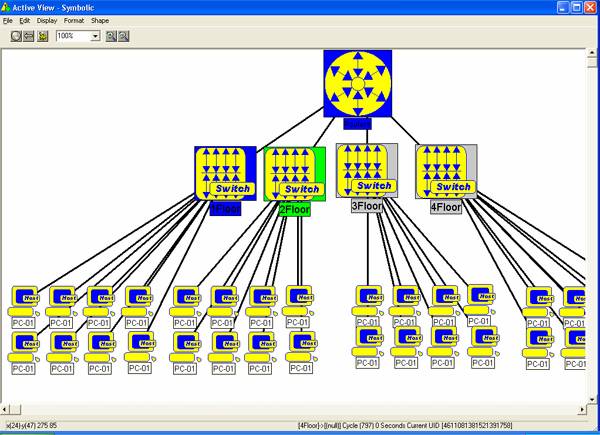 De nombreux objets graphiques (clipart) disponibles pour l'édition des vues actives aident à la conception de synoptiques de réseaux (routeurs, pc, switch,etc...)
