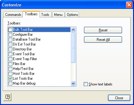 The Toolbar tab allows you to select what tool bars will be displayed on startup.