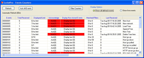 Coming with the version 4, the accounting of Event types and Trap types is now possible. You can filter from the display repetitive events, trigger action on a specific event type recurrence, use these counters in Active View and change the color of an Active View object on a specific trap occurence.