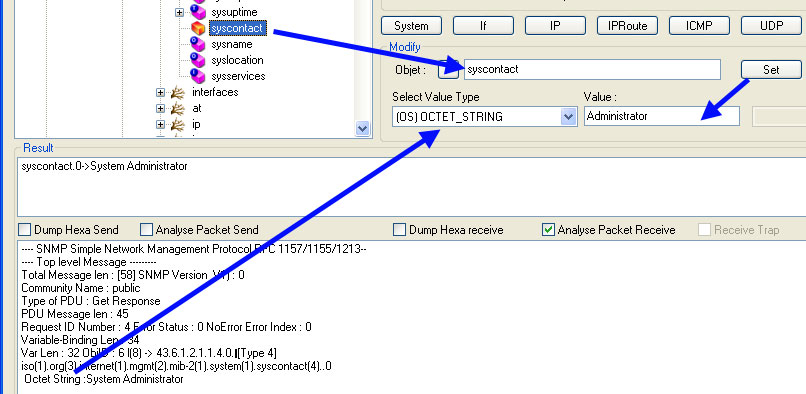 A doublke click on the snmp object in the tree copy the snmp object or all the snmp objects if it is a snmp table object in the Start Object area. Start snmp object area is use to make snmp query or the start a snmp walk with a snmp get next.