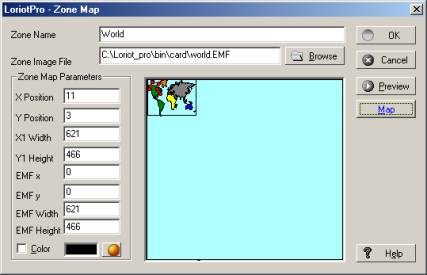 This option allows you to insert a Zone map from an image file (EMF format) to have a background of your choosing. The surface used by the image is called ZoneMap. It is better and easier to use the context menu to insert a Zonemap directly at� the right location in the network map.��� Remark: This ZoneMap will be indexed by the network map Tool Bar and therefore can be directly selected. LoriotPro uses EMF (Extended Meta File) as ZoneMap images. |